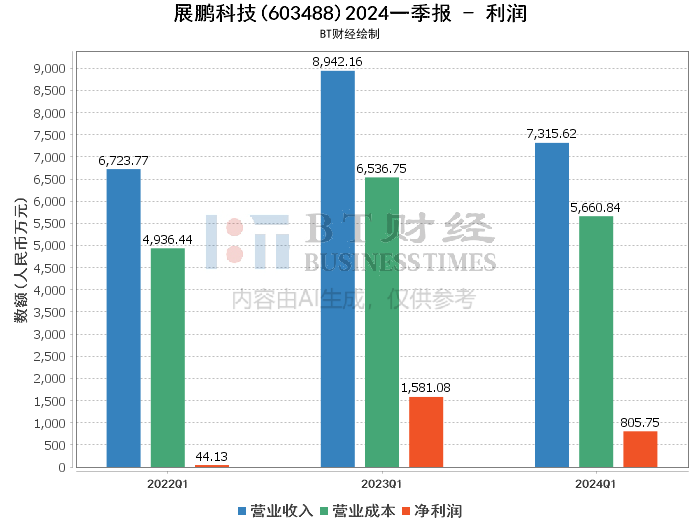 展鹏科技股份有限公司(股票代码:603488)是一家专注于高科技领域的企业,致力于为客户提供创新的技术解决方案。公司在多个领域拥有领先的技术和市场地位,近年来在资本市场表现稳健。然而,2024年一季度的财报数据却显示出一些值得关注的变化。