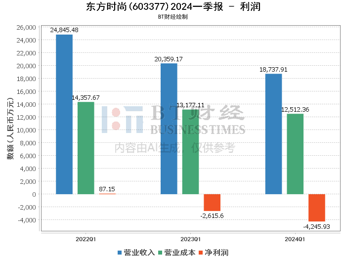 在利润方面,东方时尚2024年一季度的营业收入为1.87亿元,同比下降了7.96%。营业成本为1.25亿元,同比下降了5.05%。毛利率从上年同期的35.28%下降至本报告期的33.22%,显示出公司在成本控制方面仍需加强。归属于上市公司股东的净利润为-35.11百万元,归属于上市公司股东的扣除非经常性损益的净利润为-36.74百万元,主要原因是受学员无法及时到校参加驾驶培训的影响,公司本期培训收入下降较为明显,导致净利润出现下降。基本每股收益和稀释每股收益均为-0.05元,加权平均净资产收益率为-1.67%,较上年同期减少了0.53个百分点。