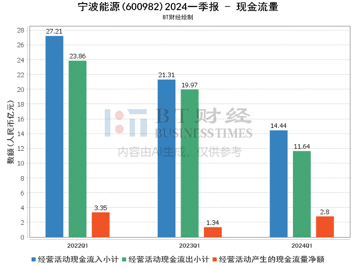 现金流量方面,宁波能源2024年一季度经营活动产生的现金流量净额为2.8亿元,同比大幅增长119.87%。主要原因是本期收到可再生能源补贴电费,导致销售商品提供劳务收到的现金增加。经营活动现金流入小计为14.44亿元,较上年同期的21.32亿元有所减少,但经营活动现金流出小计也相应减少至11.64亿元,较上年同期的20.04亿元大幅下降。这表明公司在现金流管理方面取得了较好的效果。