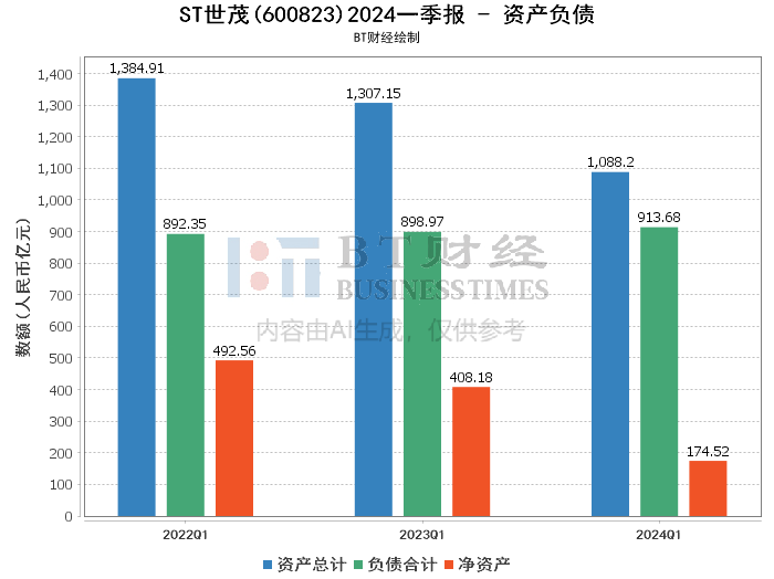 ST世茂(股票代码:600823)是一家在中国房地产市场具有重要地位的公司,主要从事房地产开发、销售及物业管理等业务。公司在过去几年中经历了快速扩张,但也面临着市场波动和政策调整带来的挑战。2024年一季度财报显示,ST世茂在多个财务指标上出现了显著变化,本文将对这些数据进行详细分析。
