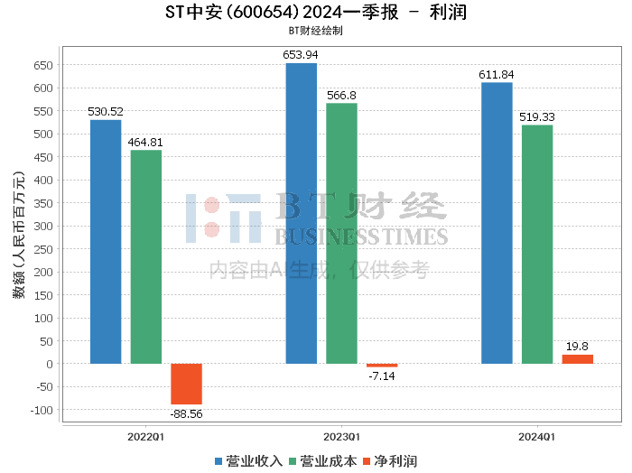 ST中安(股票代码:600654)是一家专注于安全技术和服务的公司,主要业务涵盖安全技术研发、产品制造和安全服务等领域。公司致力于通过技术创新和服务提升,为客户提供全方位的安全解决方案。2024年一季度,ST中安发布了最新的财务报告,本文将对其财务数据进行详细分析和讨论。