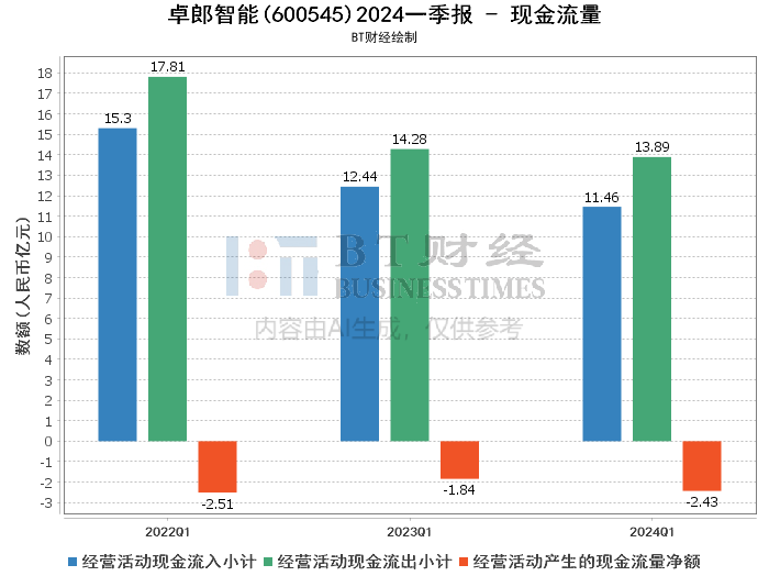 在现金流量数据方面,卓郎智能的经营活动现金流入小计为1,146,122千元,同比减少7.9%;经营活动现金流出小计为1,389,062千元,同比减少2.7%。经营活动产生的现金流量净额为-242,940千元,显示出公司在经营活动中的现金流出大于现金流入,主要由于销售商品、提供劳务收到的现金减少所致。