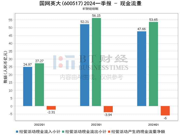 现金流量数据方面,国网英大2024年一季度经营活动现金流入小计为47.66亿元,同比减少8.71%。经营活动现金流出小计为53.65亿元,同比减少4.45%。经营活动产生的现金流量净额为-6亿元,主要系本期证券投资业务净流出增加所致。这表明公司在经营活动中的现金流管理仍需进一步优化。