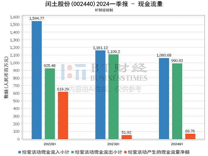 总体来看,闰土股份在2024年第一季度的财务表现显示出一定的稳定性,但也面临着利润下降和市场竞争加剧的挑战。尽管营业收入和净利润有所下降,但公司在毛利率和经营活动现金流方面表现较为稳健。未来,公司需继续加强对资金流动性的管理,优化成本控制,提升市场竞争力,以应对行业内外部环境的变化。
