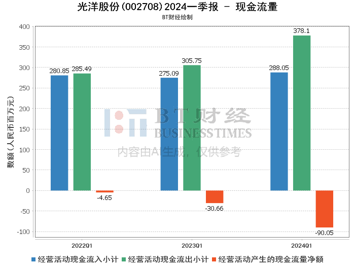 综上所述,光洋股份2024年一季报显示出公司在营收和净利润方面取得了显著成绩,但同时也暴露出现金流压力较大的问题。未来,公司需要在保持业务增长的同时,加强财务管理和风险控制,以确保持续稳健的发展态势。