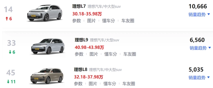 或许价格更低的L6将是理想的救命稻草,也是理想打赢价格战的希望。4月中旬,理想L6上市,起售价仅为24.98万元,相比此前车型,这款车的售价明显低很多,在五一期间,理想又推出1万元的限时权益,这让理想L6半个月内就拿下了4.1万辆的订单。但理想这个价格的车型面临的竞争异常激烈,问界、小米、极氪都是理想L6的竞争对手。理想L6在5月初的订单是可退的订单,最终销量如何还需观察。