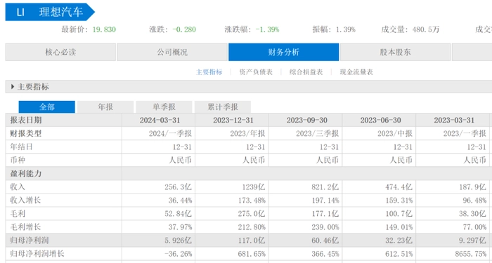 要知道此前4个季度,理想的净利润增幅是惊人的,2023年一季度至四季度,理想的净利润同比增幅高达8655.75%、471.08%、272.11%和2102.12%。从此前连续4个季度的净利润高增长,一下降为负增长,可能让很多投资者措手不及。