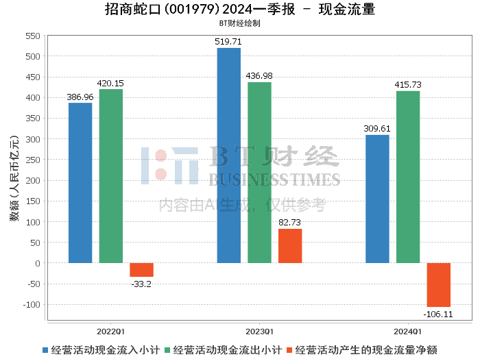 总体来看,招商蛇口在2024年一季度表现出较强的业务增长能力,尤其是在房地产开发业务上取得了显著的进展。然而,经营活动现金流的显著下降需要引起关注,这可能对公司未来的资金周转和投资活动产生一定影响。公司需要在保持业务扩展的同时,加强销售回款和现金流管理,以确保财务结构的稳健和可持续发展。