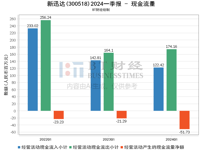 总结来看,新迅达公司在2024年一季度面临较大的经营挑战,尤其是在直播电商业务方面,收入大幅下降对整体业绩产生了显著影响。尽管公司在锂电新能源领域继续保持增长,但盈利能力和现金流状况均不理想。未来,公司需要进一步优化业务结构,提升经营效率,以应对市场变化和竞争压力。