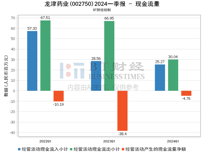 总体来看,龙津药业在2024年第一季度的财务表现显示出一定的改善迹象。尽管公司仍处于亏损状态,但营业收入和毛利率均有所提升,净亏损额显著减少。资产负债率的上升和现金流量的改善也反映出公司在业务扩展和财务管理方面的努力。然而,投资活动现金流量的显著减少需要引起注意,未来公司在投资管理方面需更加谨慎。
