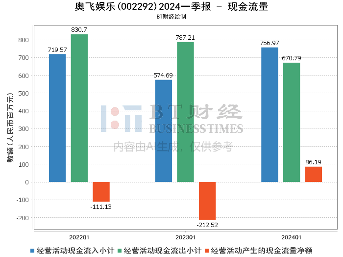 总体来看,奥飞娱乐在2024年一季度的财务表现令人瞩目。公司在资产负债管理、盈利能力提升和经营活动现金流改善方面均取得了显著进展。然而,投资和筹资活动现金流的波动也提示公司需要在未来的财务规划中更加谨慎。随着国家对文化产业的持续支持,奥飞娱乐有望在未来继续保持良好的发展势头,进一步巩固其在动漫产业的领先地位。