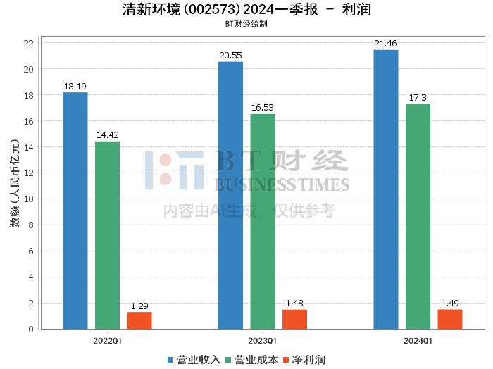 北京清新环境技术股份有限公司(股票代码:002573),是一家致力于环境保护技术研发和应用的高科技企业。公司主要业务包括大气污染治理、固废处理、水处理等领域。2024年第一季度,清新环境发布了最新的财报数据,展示了公司在各个财务指标上的表现。