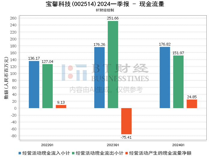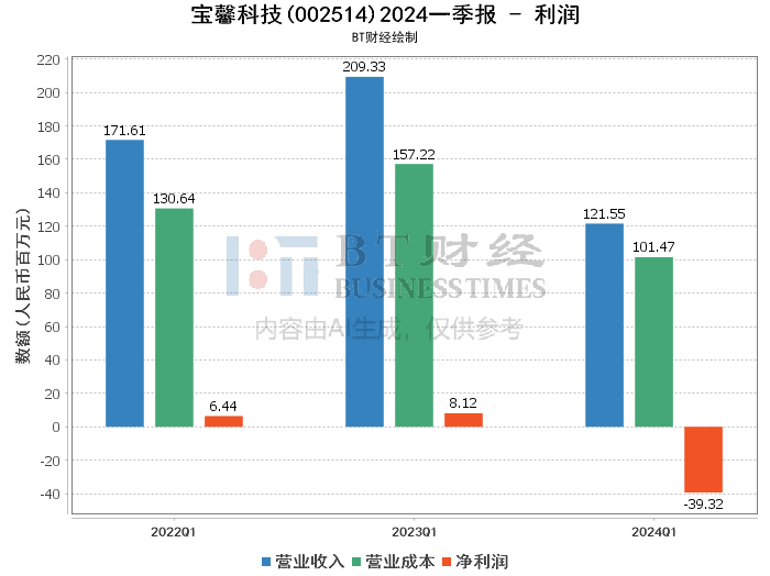 江苏宝馨科技股份有限公司(股票代码:002514)是一家专注于高端装备制造和新能源领域的企业。公司致力于为客户提供优质的产品和服务,涵盖了从研发、生产到销售的全产业链。2024年第一季度,宝馨科技发布了最新的财务报告,本文将对该报告中的关键数据进行详细分析。