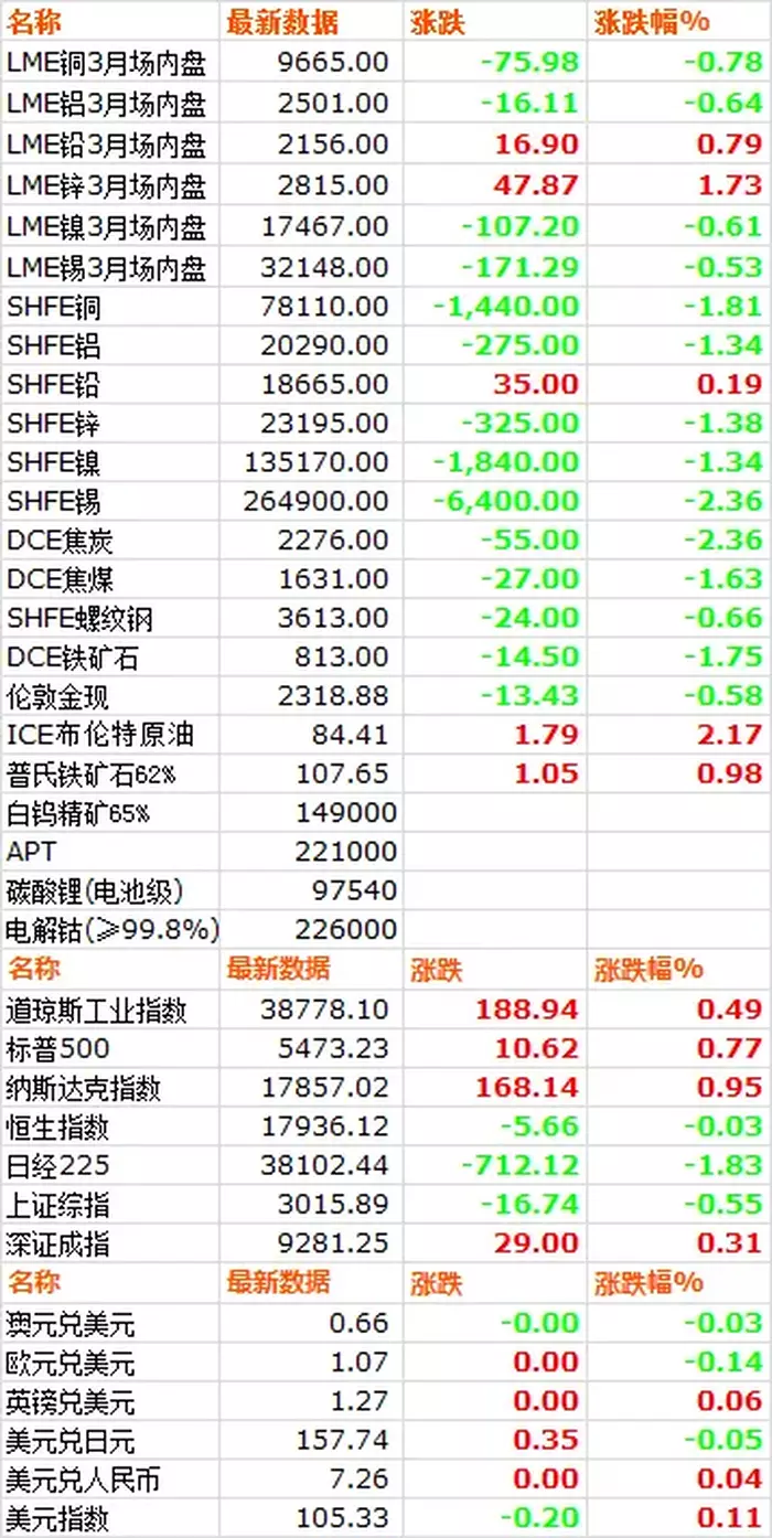 6月17日,LME六种基本金属价格跌多涨少,仅铅锌小幅上涨。三月期铜价收于9665.5美元/吨,下跌0.78%。三月期铝价收于2501.5美元/吨,下跌0.64%。三月期铅价收于2156.5美元/吨,上涨0.79%。三月期锌价收于2815.5美元/吨,上涨1.73%。三月期锡价收于32148美元/吨,下跌0.53%。三月期镍价收于17467美元/吨,下跌0.61%。