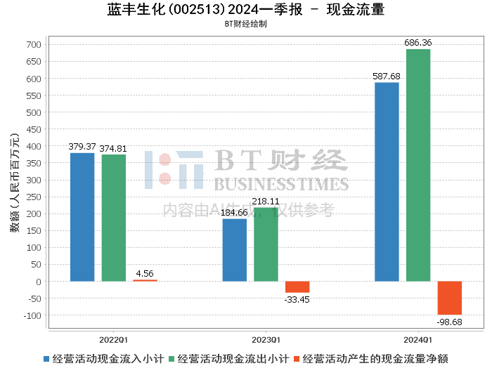江苏蓝丰生物化工股份有限公司(股票代码:002513),是一家专注于生物化工领域的企业。公司主要从事农药、医药中间体及相关产品的研发、生产和销售。蓝丰生化在国内外市场均有较高的知名度和市场占有率。2024年第一季度,公司发布了最新的财务报告,以下是对其财务数据的详细分析。