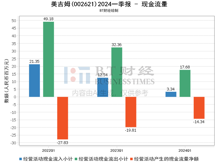 总体来看,美吉姆在2024年第一季度面临着较大的财务压力,主要体现在营业收入大幅下降和净利润亏损加剧。尽管经营活动现金流有所改善,但整体财务状况仍需进一步优化。公司需要采取有效措施,提升收入,控制成本,以改善财务状况,确保可持续发展。