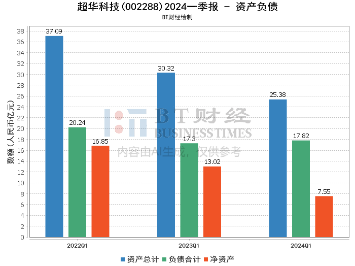 从资产负债数据来看,超华科技的总资产在报告期末为25.38亿元,较上年度末的25.09亿元增加了1.15%。尽管资产有所增加,但负债也相应增加,期末负债合计为17.82亿元,较期初的17.26亿元增加了3.29%。这导致公司的资产负债率从期初的68.78%上升到期末的70.24%。此外,归属于上市公司股东的所有者权益从上年度末的7.93亿元下降到7.65亿元,减少了3.51%。这表明公司在资产负债管理方面面临一定压力。