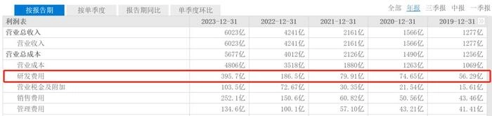 研发费用超过千亿是什么概念?以比亚迪的“友商”长城汽车为例,财报有显示研发费用以来,长城汽车总研发投入为318.4亿元。研发投入不足比亚迪的三分之一。2020年至2022年比亚迪的研发费用分别为85.6亿元、106.3亿元和185.5亿元,占同期营业收入的5.46%、4.92%和4.77%,2023年比亚迪研发费用395.7亿元,研发占比大幅提升至6.5%。同期长城汽车的研发费用为30.67亿元、44.90亿元和64.45亿元,研发占比分别为2.97%、2.74%和4.69%,2023年长城汽车研发费用80.54亿元,研发占比4.65%。比亚迪的研发占比在提升,而长城汽车的研发占比在下滑。