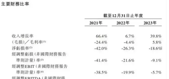 2022年以前,曹操出行的毛利率一直为负,直到2023年才首次由负变正。招股书显示,曹操出行在2021年和2022年毛利润分别为-17.47亿元和-3.39亿元,2023年曹操出行的毛利润由负为正,当年录得毛利润6.15亿元。受惠于2023年毛利润变正,2021年和2022年毛利率为-24.4%、-4.4%的曹操出行在2023年将毛利率也扭负为正,当年毛利率为5.8%。