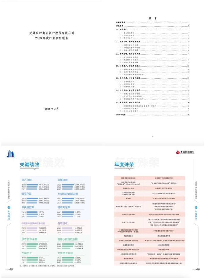 市场普遍认为银行的ESG报告写得都很好,但翻看无锡银行的《2023年度社会责任报告》,第一印象便是朴素,甚至有些简陋。