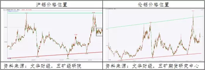 图4:沪铝和伦铝价格分别处在长期价格区间