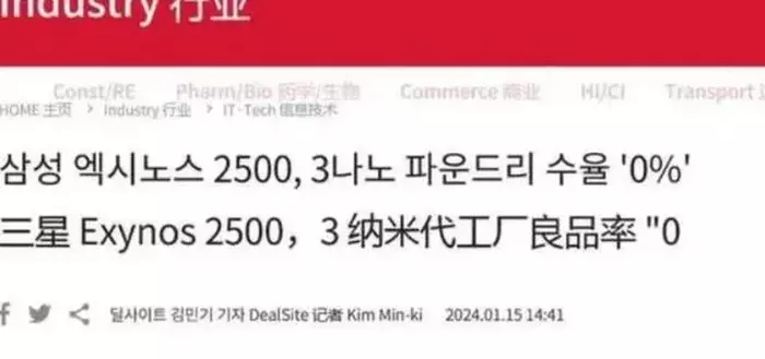 此前,韩媒DealSite的一份爆料更是令人咋舌:三星在试生产Exynos 2500处理器时,其3纳米工艺的良率竟然为0%。这一消息虽令人难以置信,但却与郭明錤的爆料不谋而合,引发了业界对三星3纳米工艺良率的广泛质疑。