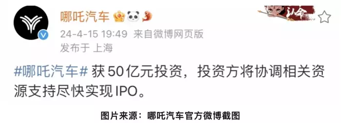 上市不仅是为了缓解资金压力,更是为了在竞争激烈的新能源汽车市场中建立竞争优势。4月15日,哪吒获得50亿元的投资,哪吒也在其官方微博宣布投资方将协调相关资源支持尽快实现IPO。