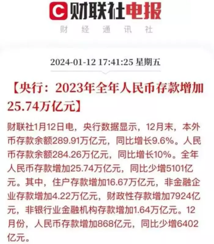 中国人民银行发布的2023年金融统计数据报告显示,2023年中国多出25.74万亿元的存款。这还是相比2022年少增了5101亿元,这意味着近两年居民存款多出50多万亿元,说明老百姓消费和投资意愿降低了。银行降息不仅能够响应大力发展实体经济的国家战略号召,也能刺激老百姓进行消费和投资。让钱流动起来,而不是躺在银行。