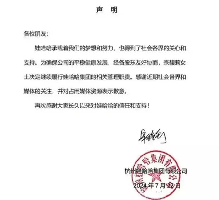 近日,宗馥莉辞任娃哈哈副董事长又继续留任一事,被炒得沸沸扬扬。