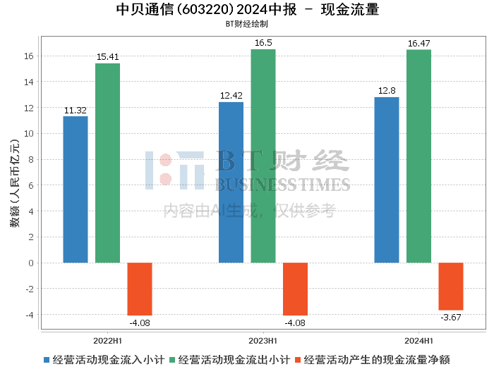 综上所述,中贝通信2024年中报显示出公司在稳固5G新基建业务的基础上,成功拓展了算力业务和新能源产业布局,实现了业绩的稳健增长。虽然负债率和现金流情况反映出公司面临一定的资金压力,但整体财务状况健康,未来发展前景可期。