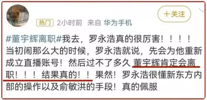 董宇辉离开东方甄选后,罗永浩的评论区却彻底沦陷了。因为罗永浩在董宇辉“小作文”事件后就曾作出神预判,他曾预言,俞敏洪会先给董宇辉成立直播账号,然后过不了多久,董宇辉肯定会离职。罗永浩自称是最了解俞敏洪的人,事情发展的和他预言真的一模一样。