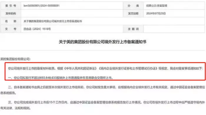 起因是7月23日,证监会IPO备案的公告披露,拟发行不超过650,848,633股境外上市普通股并在香港联合交易所上市。这意味着美的集团有望成为A股和港股同时上市的家电企业,更有望成为近年来港股规模最大的IPO之一。