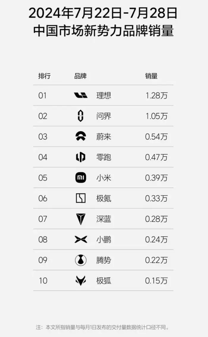 据《北京商报》7月31日《“不要搞低水平内卷”!蔚来和吉利高管公开反对“理想周榜”》报道,7月30日,理想正常发布2024年第30周销量数据。这个周榜理想早在2023年3月第四周就开始发布,此后固定在每周二发布前一周的销量数据。这意味着这份榜单已经发布了70次左右,榜单的数据来源明确标注为“中汽数据终端零售数据”。吉利等车企对此也颇有微词。