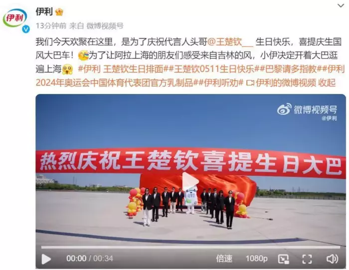 据《第一财经》8月7日报道《奥运营销,选谁很重要》显示,奥运会开幕之前,伊利签约王楚钦,在王楚钦生日期进行了一场营销,飞机拉横幅,生日大巴车。伊利也在官微上发布了为王楚钦庆生的视频。