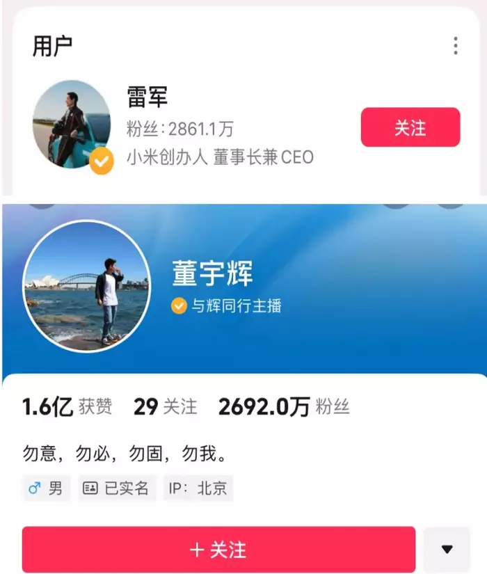截至8月12日,雷军抖音粉丝2861万,超过同期董宇辉的2692万,虽然距离头部主播动辄上亿的粉丝量还有差距,但雷军早已成为名副其实的“新王”。其实从雷军4月直播的效果来看,雷军已经成为国内最有流量的企业家,近期雷军开始直播带货,粉丝量增长惊人。