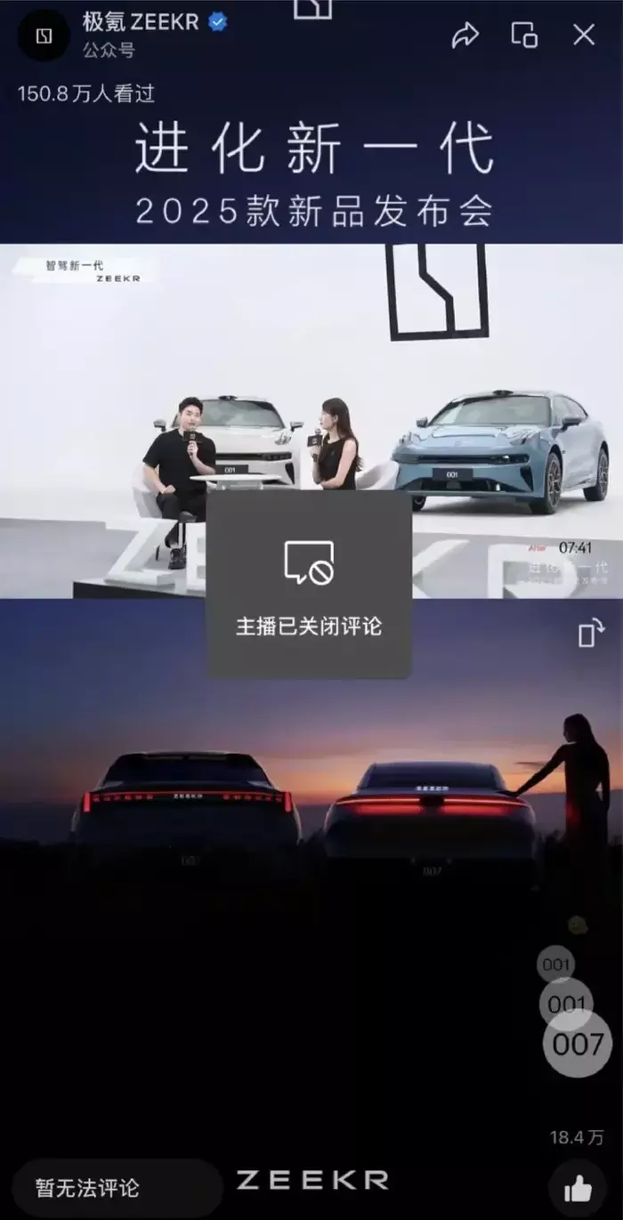 面对网友质疑,极氪在新品发布会上关闭了评论。