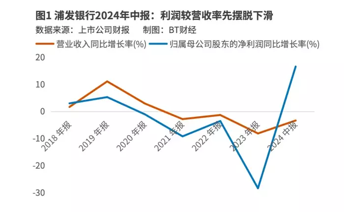向好的信号终于在2024年出现。继一季度利润同比转正、触底反弹后,浦发银行的中报继续呈现暖意,营收较2023年下滑幅度收窄、利润同比增速加快。