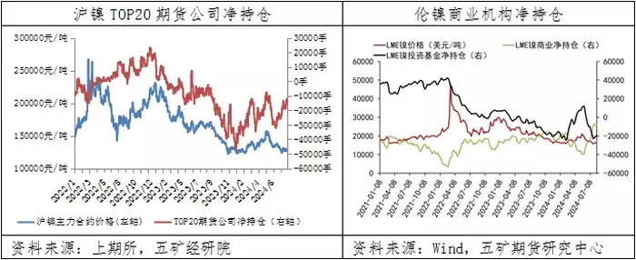 国内主力和国际产业资本收缩空头敞口。8月19日,沪镍持仓量TOP20期货公司持有净空头11269手,上月同期持有净空头25478手,收缩空头敞口;伦镍商业机构持有净空头8423手,较上月同期空头敞口收缩6605手;投资基金持有净空头18943手,较上月同期空头敞口收缩15手。