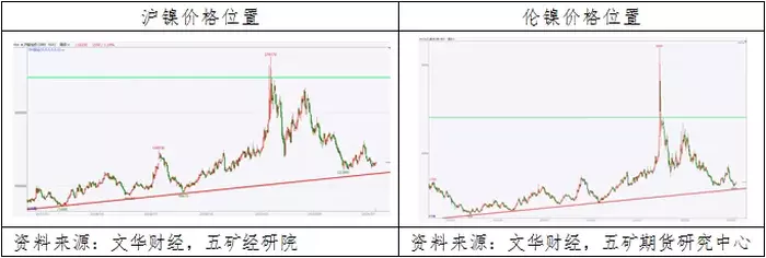图4:沪镍和伦镍价格处在长期价格区间低位