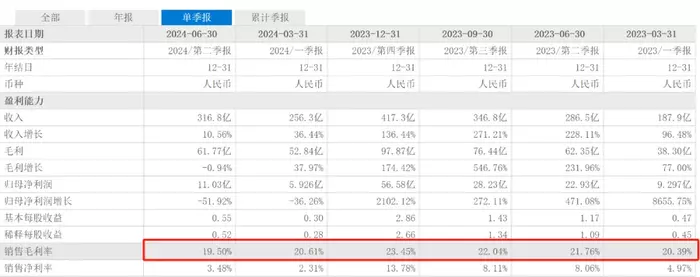 理想净利润大幅下滑,和其毛利率下滑有一定关系。第二季度,理想的毛利率为19.5%,同比下滑了2.3个百分点,环比也出现1.1个百分点的下滑。19.5%的毛利率也是近6个季度的毛利率新低。其中车辆毛利率为18.7%,同比下降2.3个百分点,环比下降0.6个百分点。第二季度理想3.48%的净利率虽然相比第一季度的2.31%,有了一定的环比提升,但相比去年同期的8.06%,同比下滑达4.58个百分点,上半年净利率为2.95%,去年同期的净利率则是6.84%,下滑了3.89个百分点。进入2024年,理想的毛利率和净利率相比此前均出现了较大幅度的下滑。