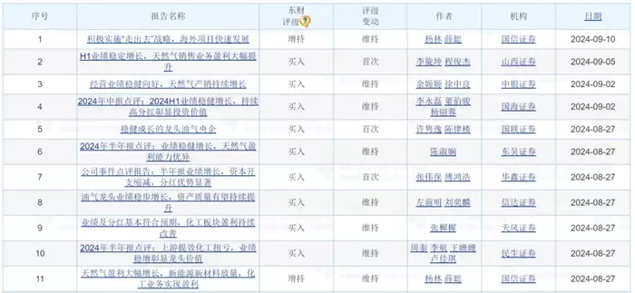 中国海油近一个月内获得11份券商研报关注,其中1份增持,10份买入。