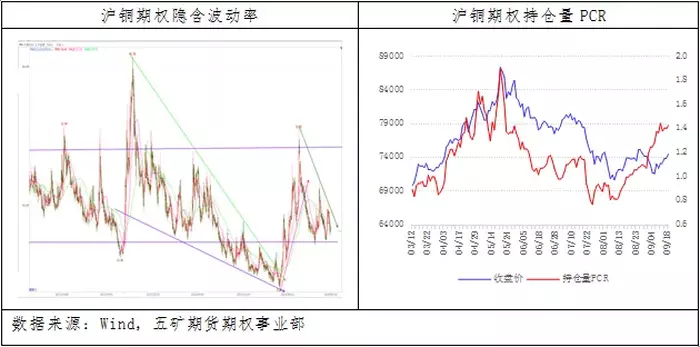 9月,空头撤离带动铜价反弹,国内主力和国际金融资本均选择扩大多头敞口。当前,铜价处于长期价格区间中部偏高位置,短期跌势放缓并走出下跌通道,转为区间震荡运行。期权隐含波动率处于中部偏低水平,市场看涨情绪明显增强,预期10月铜价主要在71000-78000元/吨区间运行。
