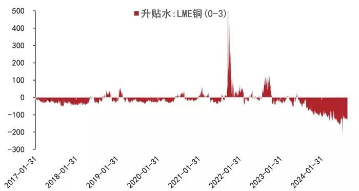 图6:伦铜Cash/3M贴水134.44美元/吨反映现货资源相对宽松