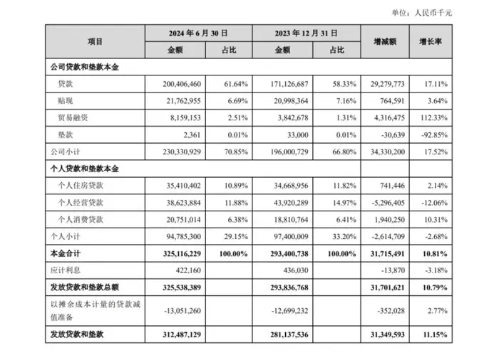截至2024年中,苏州银行公司贷款和垫款本金占比70.85%,较2023年末上升了4.05个百分点,做出了多个业绩亮点。