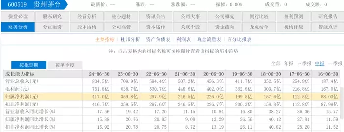 最新发布的财报显示,2024年上半年,茅台营收834.5亿元,同比增长17.56%;归母净利润417亿元,同比增长15.88%。以上半年实际天数计算,茅台每日营收高达4.6亿元,每日净赚2.3亿元。