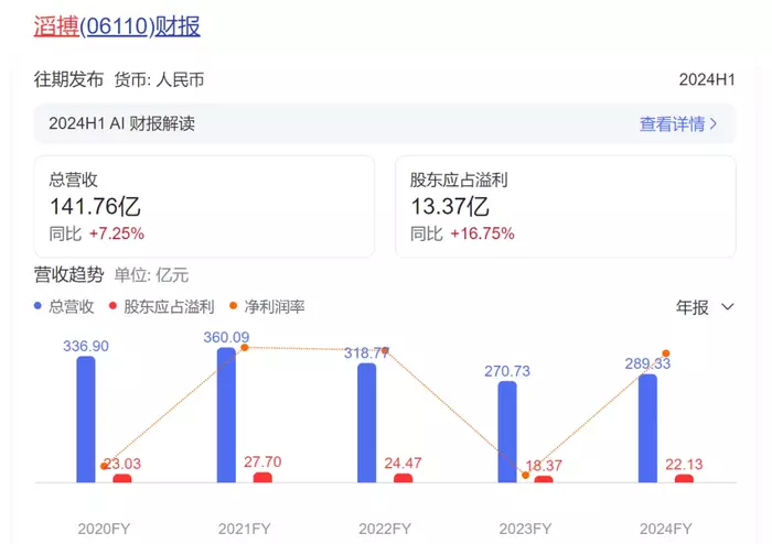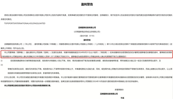 此前在9月10日滔搏曾发布盈利预警,预计截至8月31日止的六个月内毛利率较上财年同期的13.4亿元下跌约35%,公司权益持有人应占利润较2023年同期的13.37亿元下跌约35%,正是这则预警才让滔搏的股价跌至历史最低。