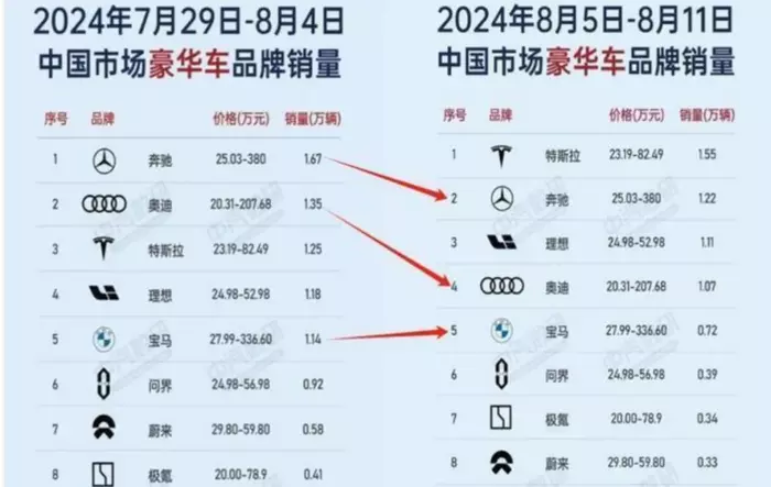 目前奥迪前三季度销量尚未公布,但结合上半年的整体表现来看,或和奔驰和宝马相差无多。反观问界、理想和蔚来以及极氪等国产高端车型的销量增速喜人,中国豪华车市场格局有可能发生较大的变化。