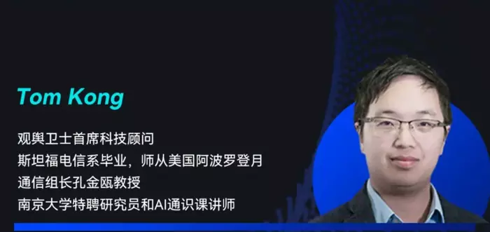 随后发言的美国硅谷人工智能研究学者Tom Kong,站在科技工作者的角度,带来了《AI技术在舆情决策与应对处置中的应用》主题演讲。