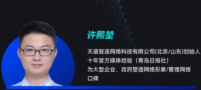 天道智连网络科技创始人许锡堃,在公关行业中率先尝试将AI舆情办公系统全面融入服务,并获得了客户的满意。他在《公关公司的AI舆情处置实践》里分享了案例。