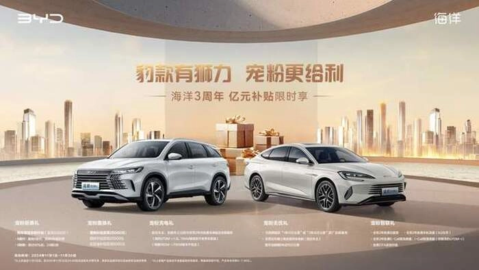 今年前10个月,比亚迪销量超325万辆,同比增长37%,累计销量已超越去年全年。时值海洋网成立三周年,为回馈“海粉”的信赖与热爱,海洋网推出“宠粉”大礼包,自2024年11月1日至11月30日,购买海豹07DM-i或海狮05DM-i,完成购车开票即可享至高5,000元保险补贴。贴心的钜惠好礼配合置换补贴,“最低0首付,至高5年超长贷”,“首付50%起,24期0息”,2年免费车机流量,2年免费云服务等多重好礼,让高品质的绿色出行体验更加触手可及。具体详情,欢迎咨询海洋网当地经销商。